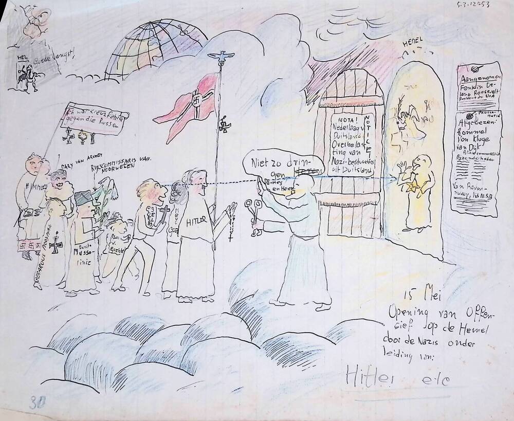 Spotprent "15 mei, Nazi's bij hemelpoort"