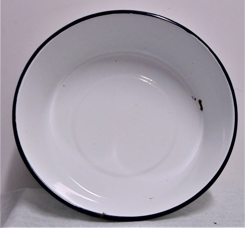 Wasbak wit van kleur met een blauwe rand.