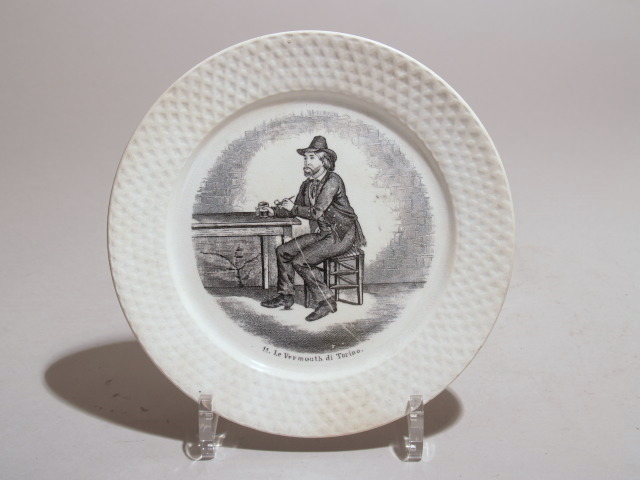 Bord met blauwwit decor van galante dame