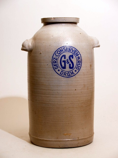 Pot met blauw opschrift Gerz.-Conserven-Krug *DRGM* G&S
