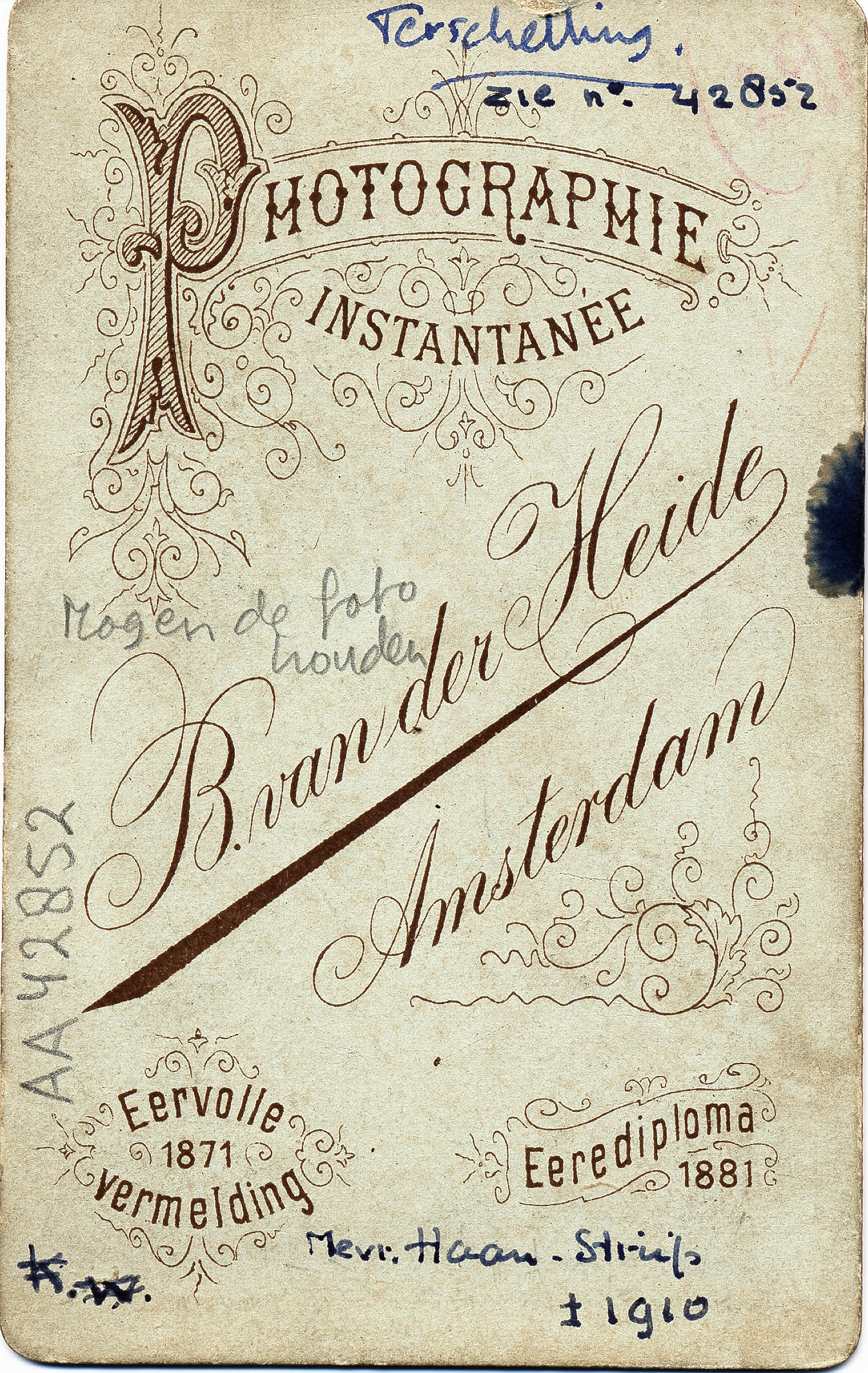PDM 1.0 DEED / Public Domain Mark 1.0 Universal<br>Van dit werk is vastgesteld dat er geen bekende auteursrechtelijke beperkingen op rusten, alle aanverwante en naburige rechten daarbij inbegrepen. Bij gebruik van de afbeelding graag vermelden: Collectie M (314)