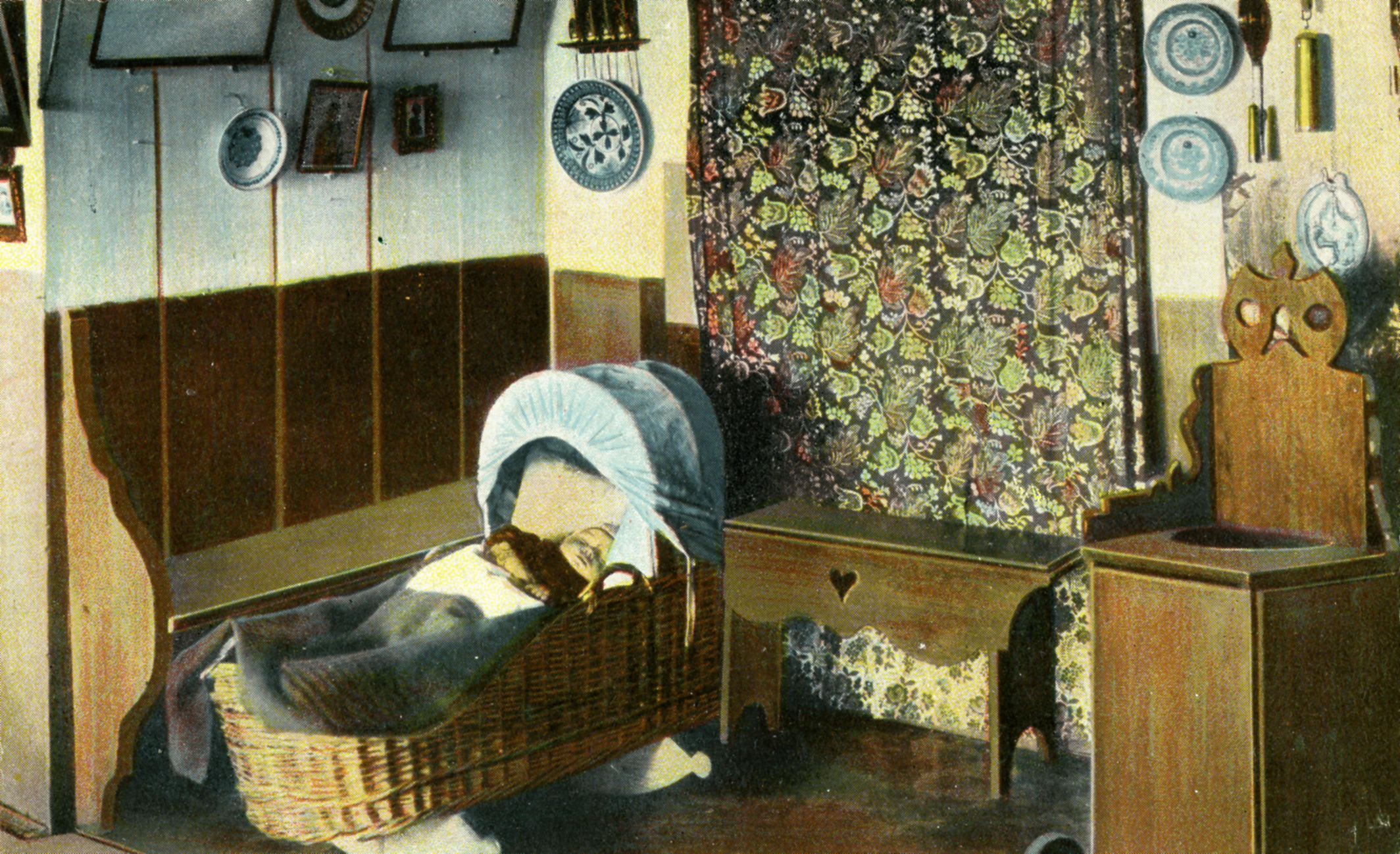 Kind in een wieg op Marken (ansichtkaart)