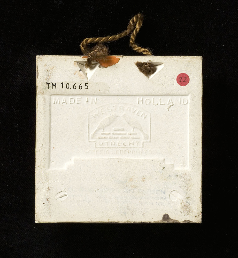 tegel van aardewerk in onderglazuur, voorstellende: ...