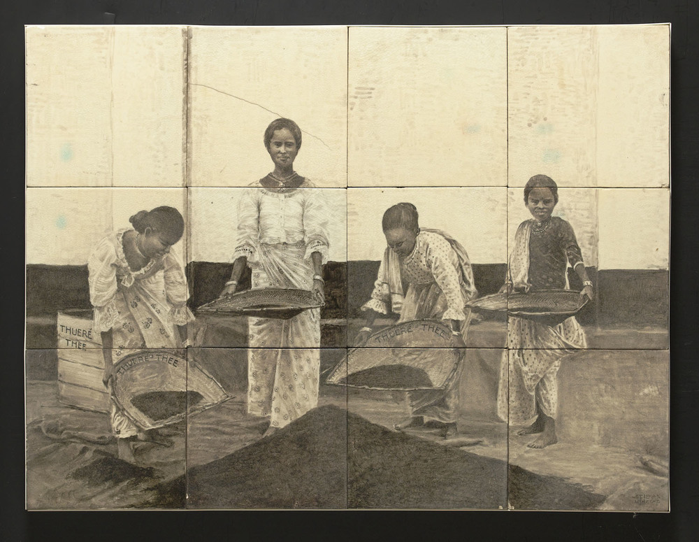 Tegeltableau van keramiek, onderglazuur, voorstellen...