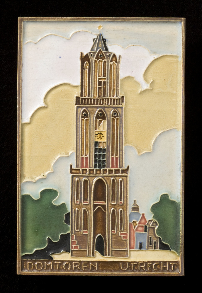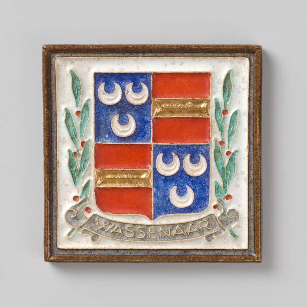 Tegel in cloisonné-techniek, voorstellende wapen Mid...