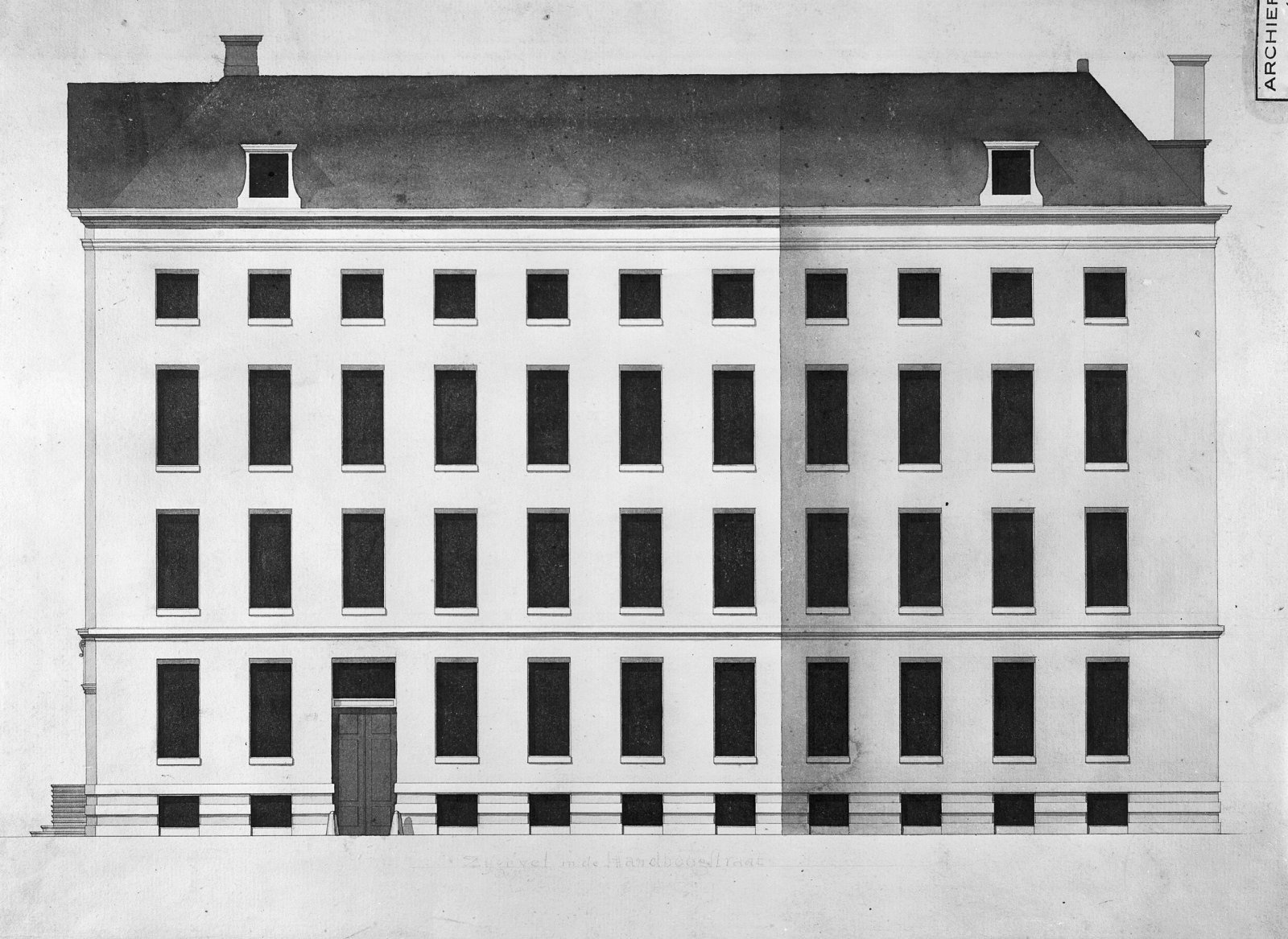 gevel aan de Handboogstr. tweede plan ca.1783