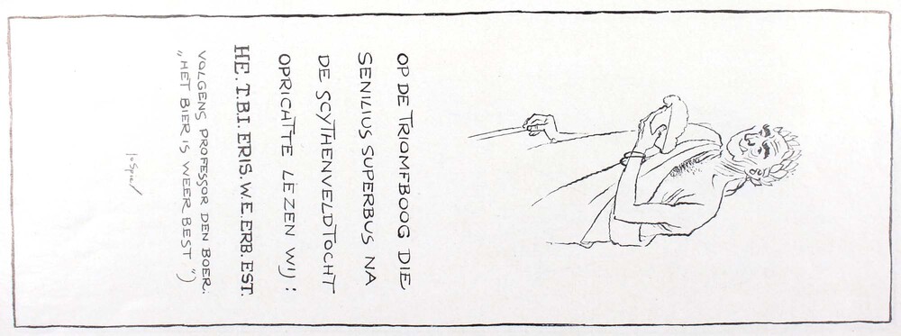 Illustratie door Jo Spier van een oude man met een k...