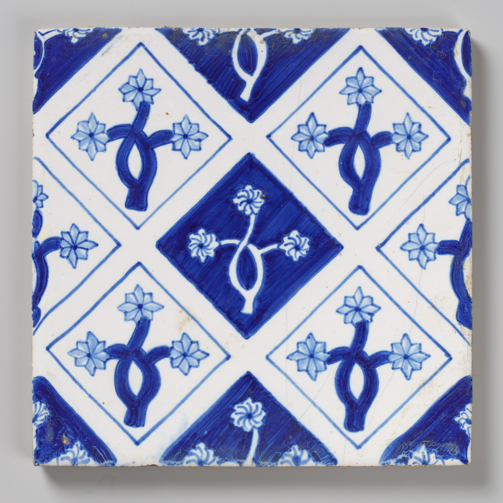 tegel van aardewerk met tinglazuur, voorstellende: o...