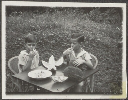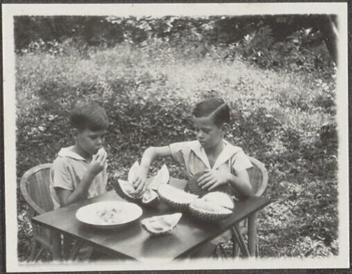 De broers Henk en Hans Japing tijdens het eten van d...