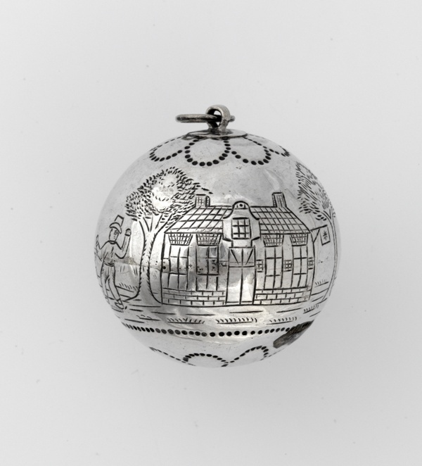 Zilveren kaatsbal met oog en ringetje om te kunnen h...
