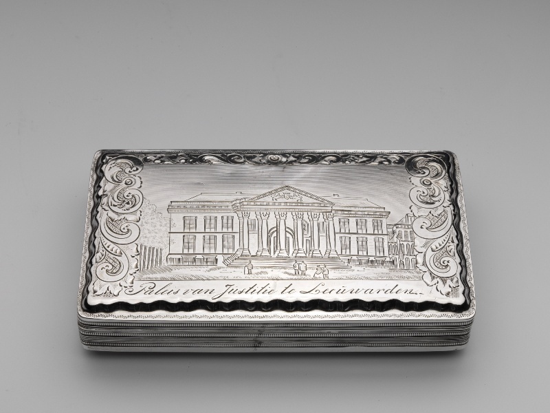 Tabaksdoos met op deksel het gerechtshof te Leeuwarden