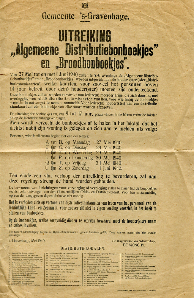 Affiche voor de uitreiking 'Algemeene Distributiebon...
