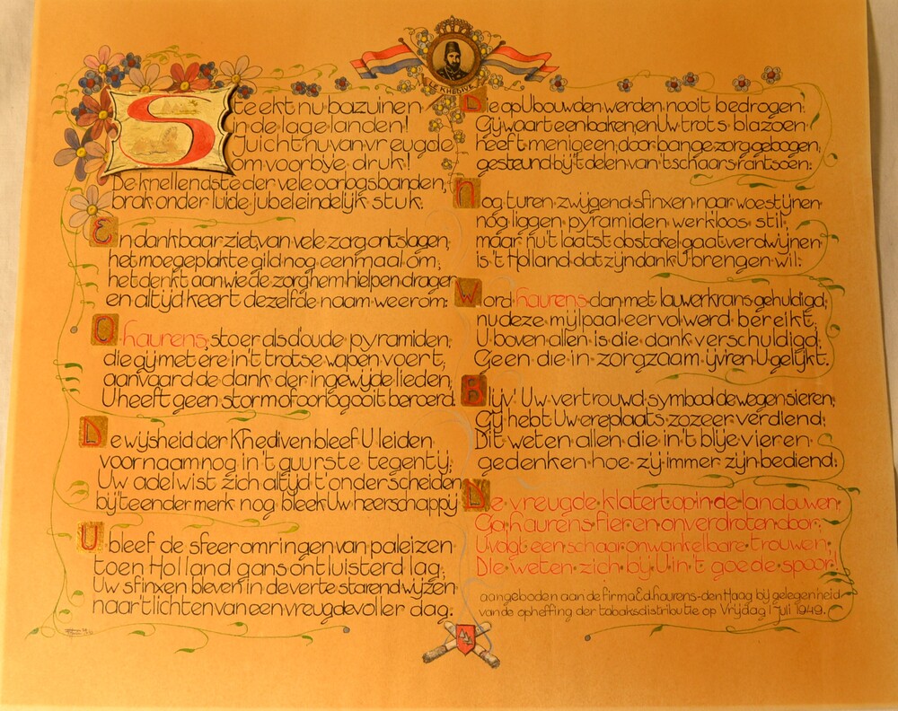Gedicht op papier aangeboden aan de firma Ed Laurens...