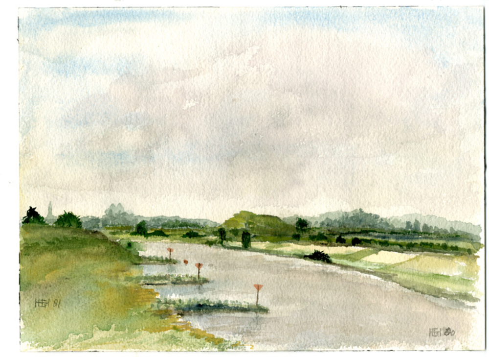 Schilderij aquarel voorstellende een zicht op de IJs...