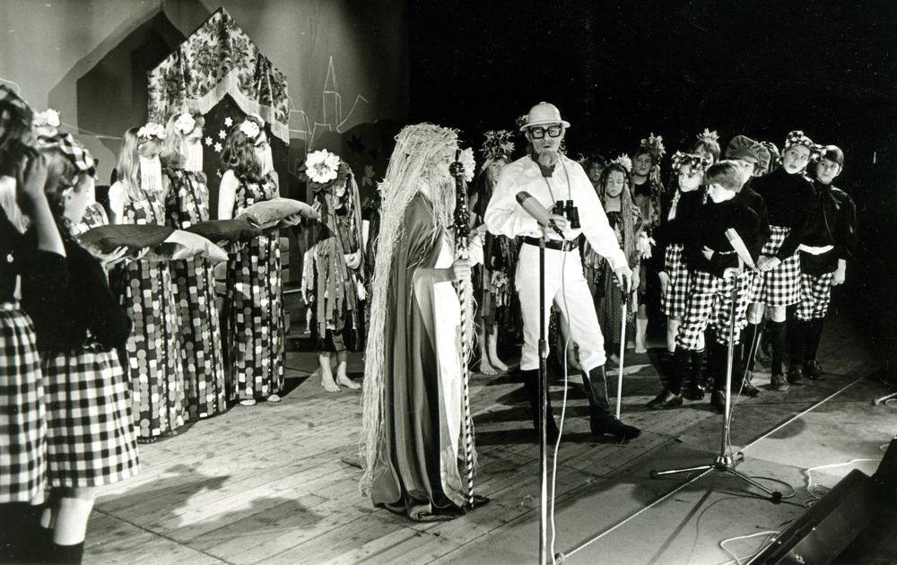 Zwart-wit foto van de Harmonie Sint Caecilia bij het...