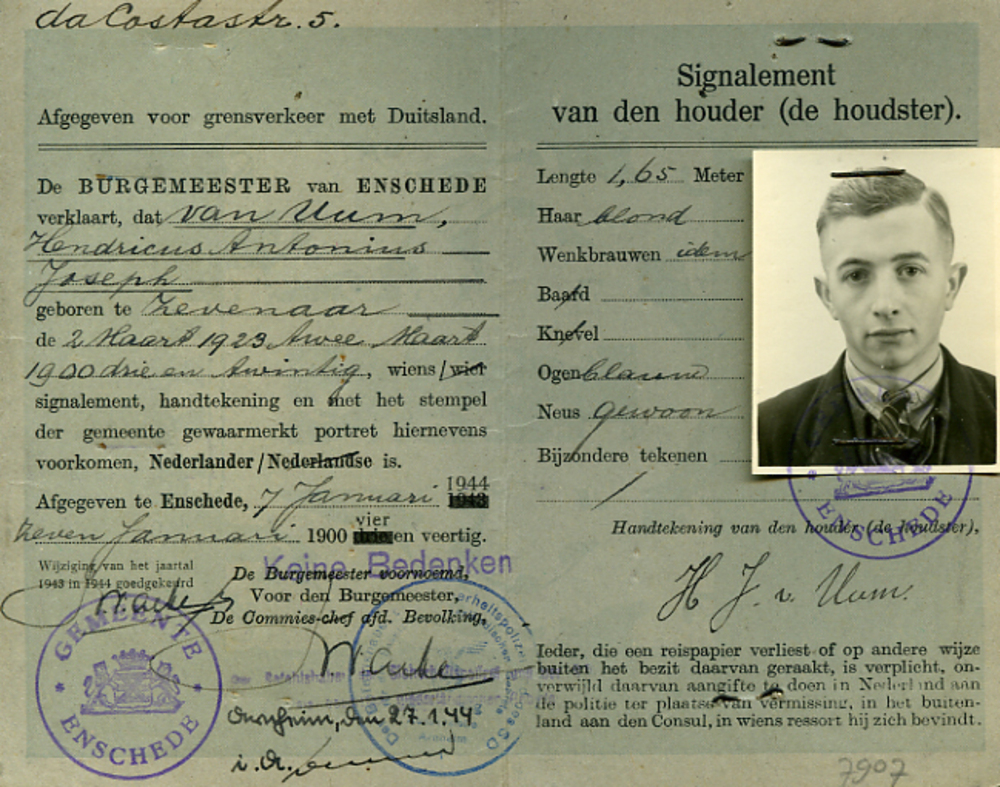 Nationaliteitsbewijs van Hendricus Antonius Joseph v...