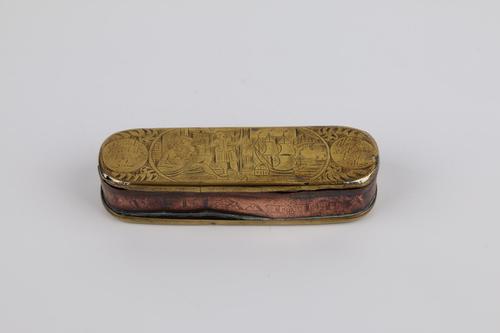 Koperen tabaksdoos met havengezicht