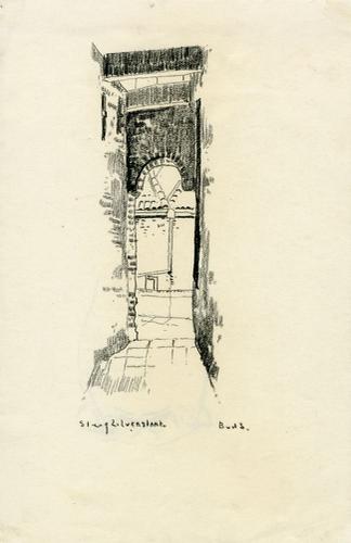 Tekening met potlood van een steegingang in de Zilve...