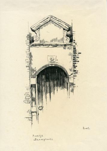Tekening met potlood van een steegingang aan de Gods...
