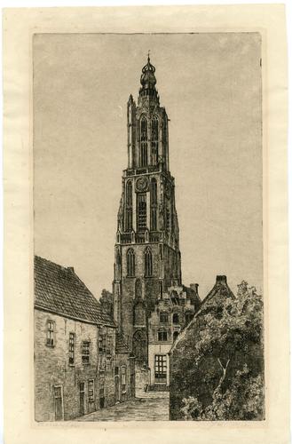 Ets van de toren van Amersfoort door J. van Oeveren