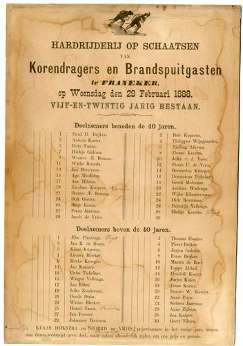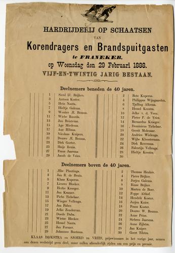 Deelnemerslijst van een schaatswedstrijd uit 1888