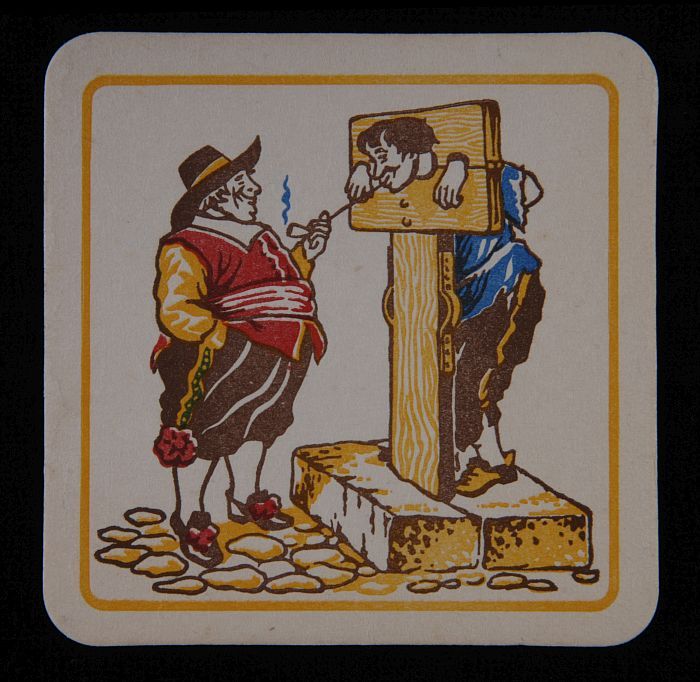 Flyer met man aan schandpaal met "Troost" en "Delft ...