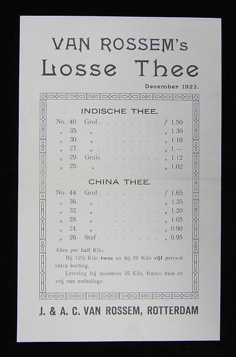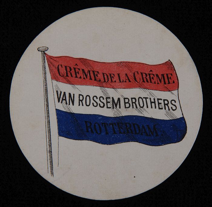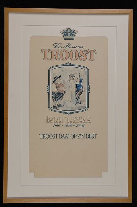 Reclamebord met "v. Rossem's troost", in houten lijst
