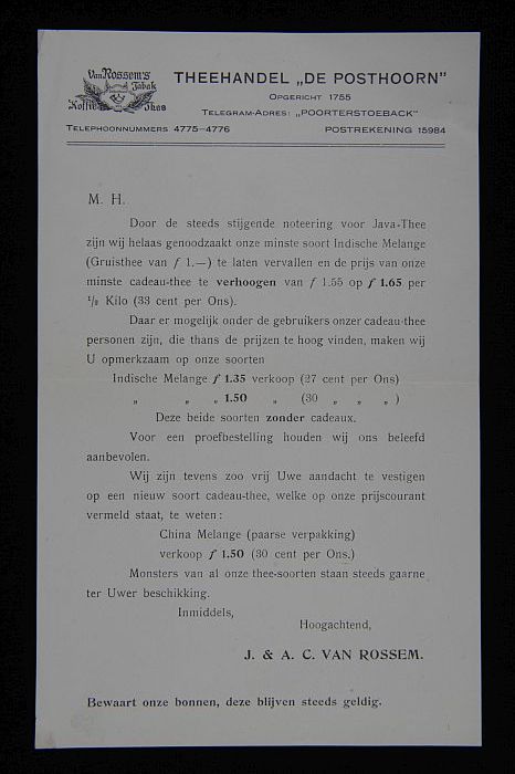Reclamebord met "v. Rossem's Poorters-Toeback", in h...