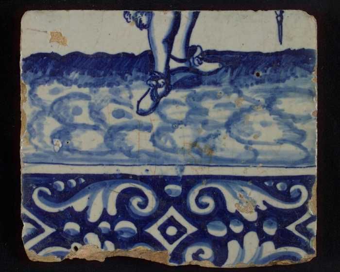 Tegel van tableau met in blauw voeten en gedecoreerd...