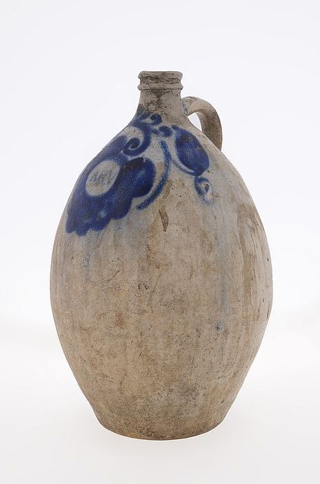 Kruik met blauwe versiering en inscriptie "AHV", Afr...