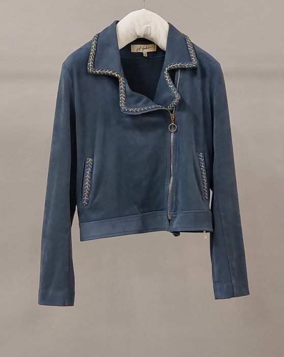 Blauw jasje van driedelig pak van Joke Bruijs