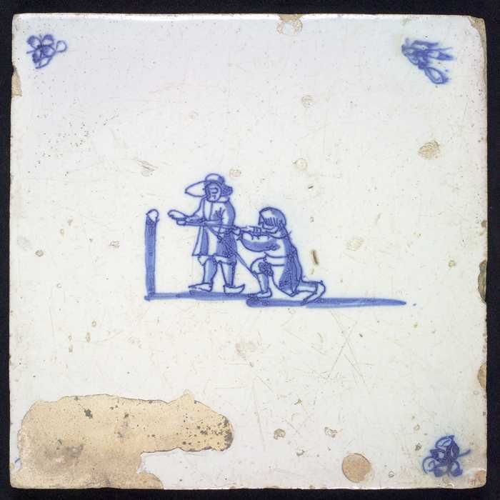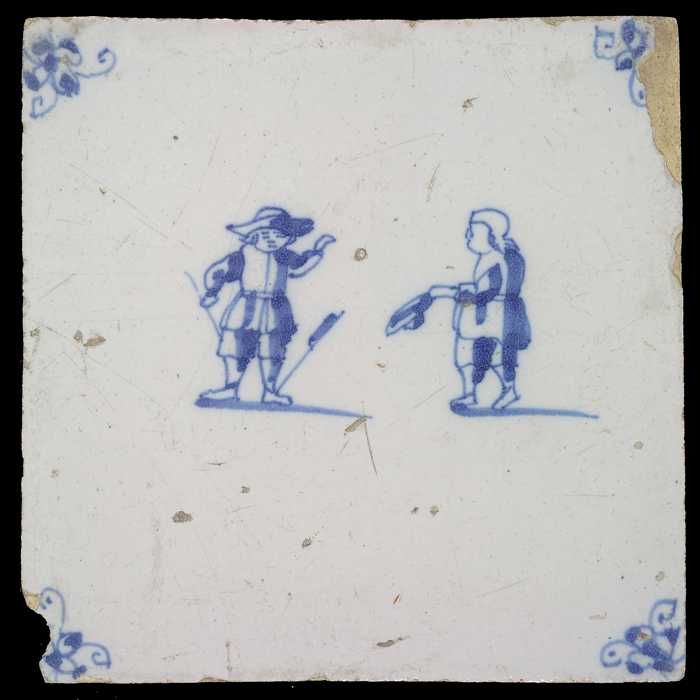 Tegel van tableau met in blauw tors van soldaat