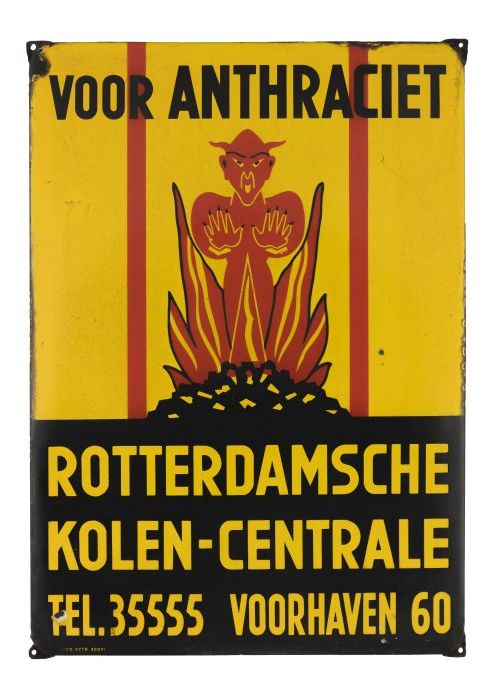 Emaille reclamebord Rotterdamsche kolen-centrale
