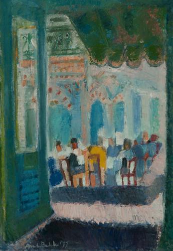 Herinnering aan mannencafé, Chios, Griekenland.