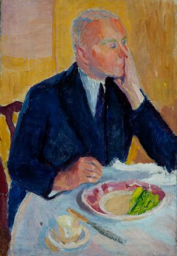 Portret van mijn vader in gele achtergrond.