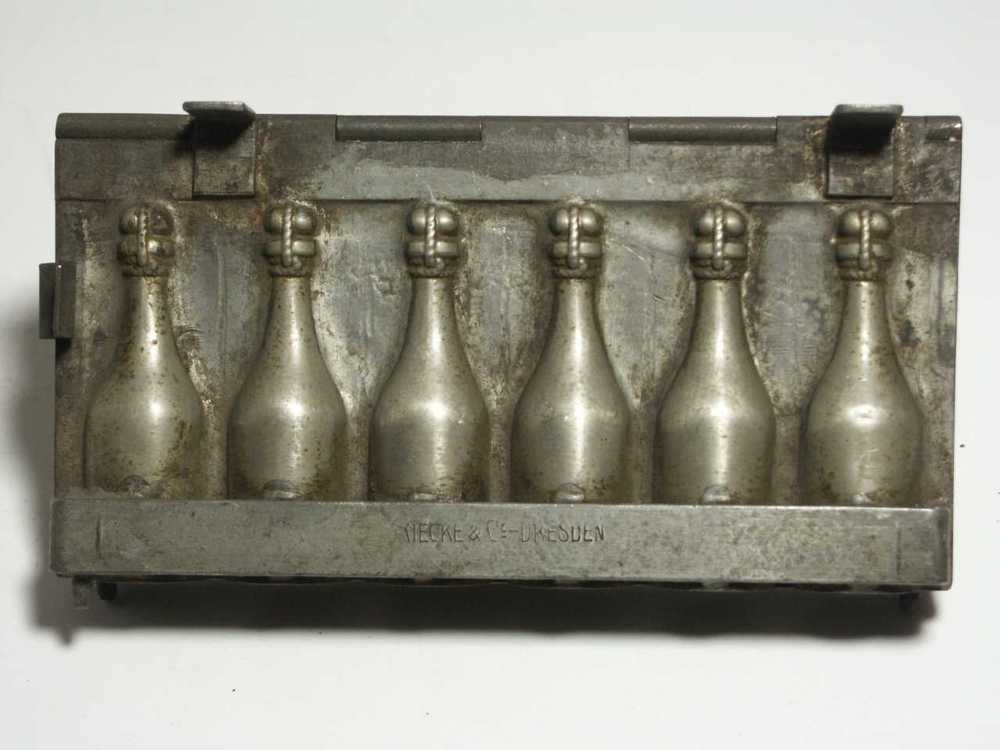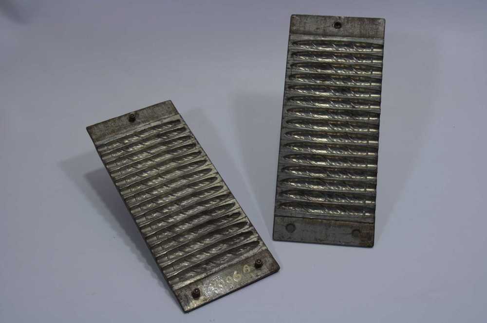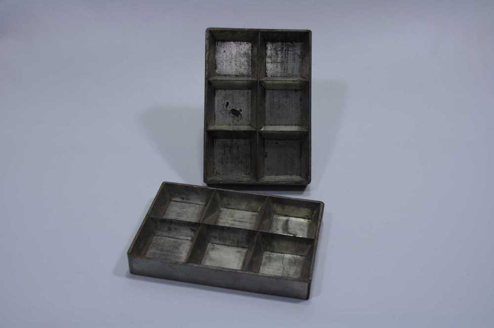 Chocoladevorm van metaal voor 6 blokken uit de 20e eeuw