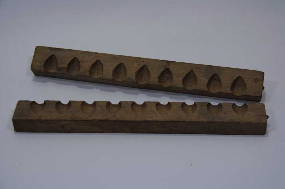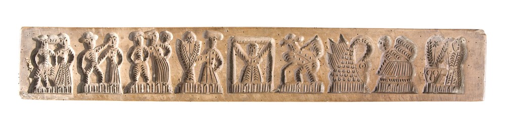 Speculaasplankuit de 20e eeuw van hout met 9 figuren.