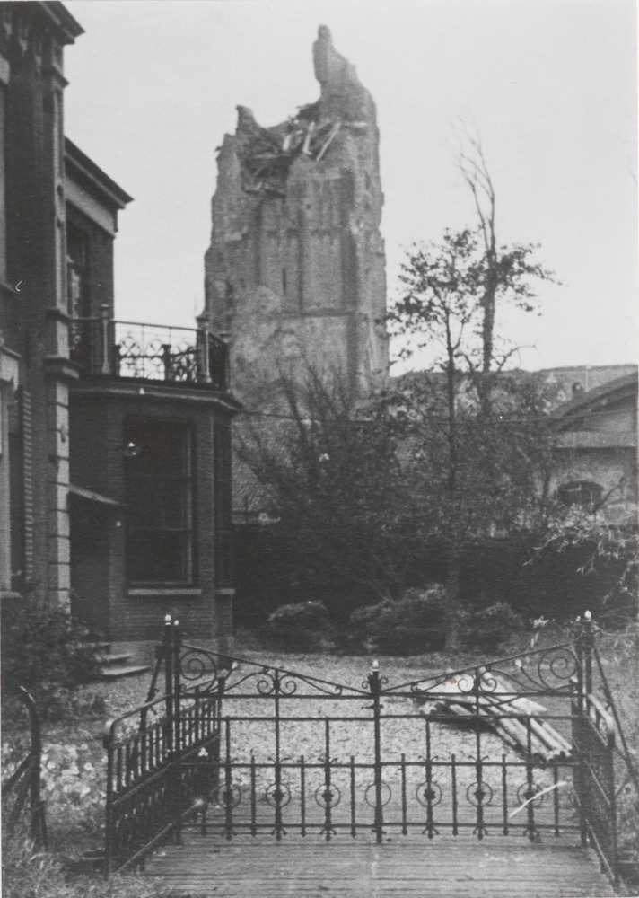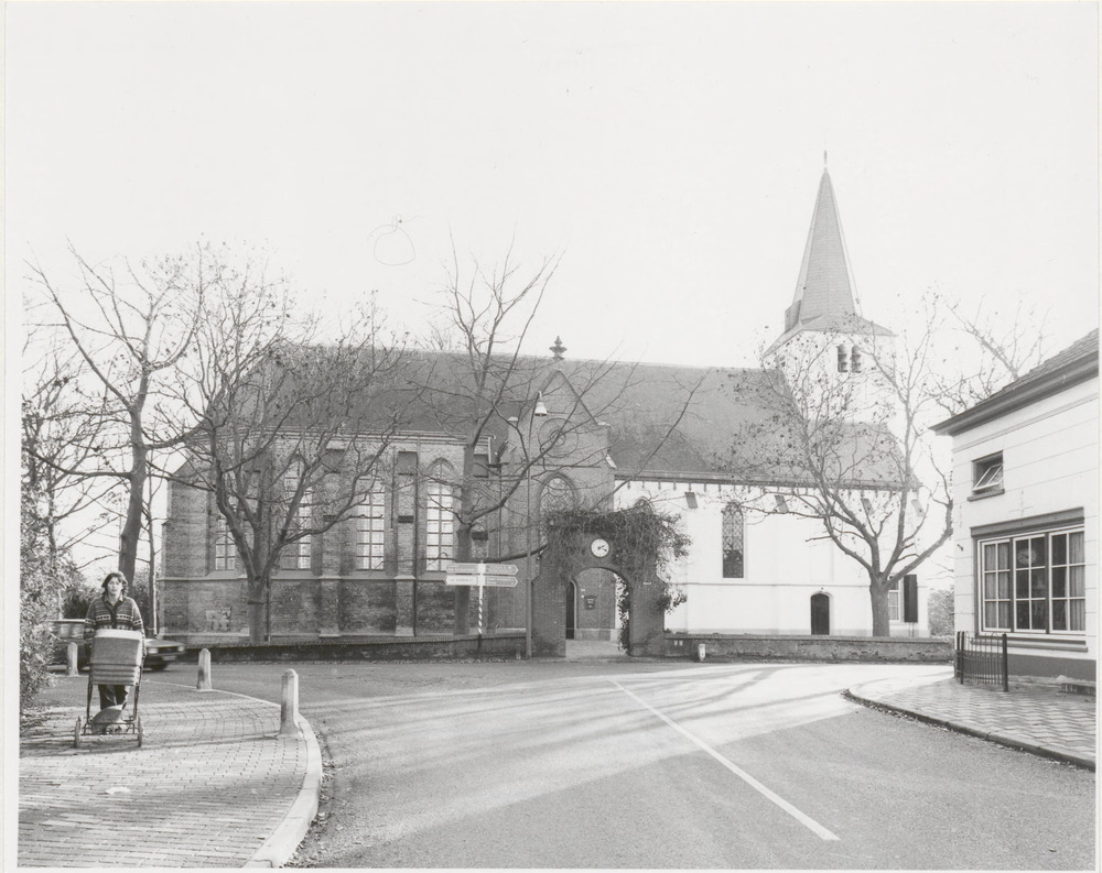 Toren en zuidgevel van de N.H. kerk na de restaurati...