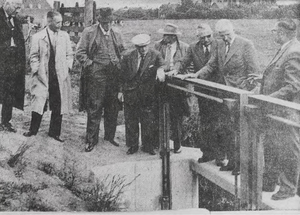 Polder bestuur bij het sluisje, 3e van links Huib Ve...