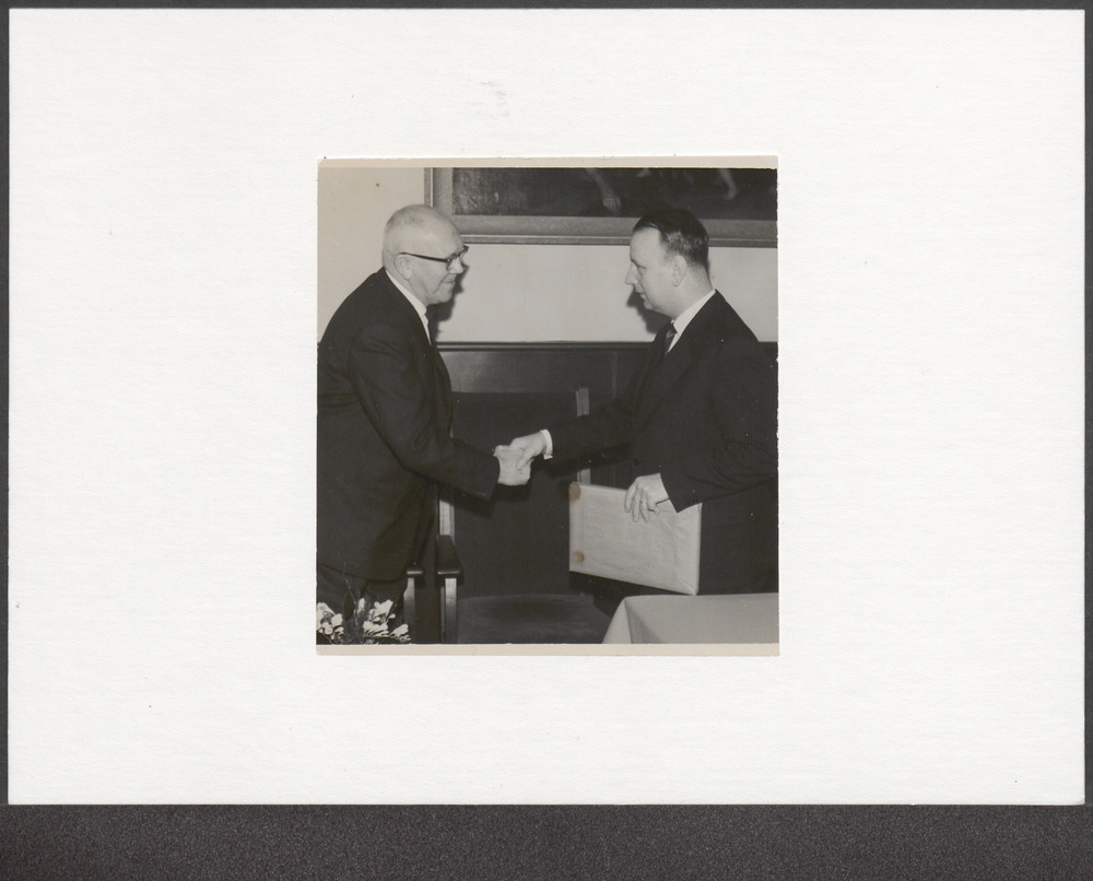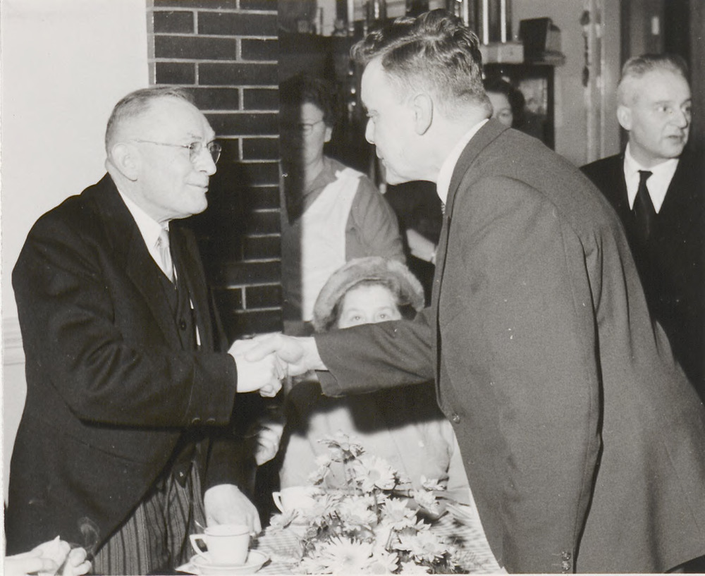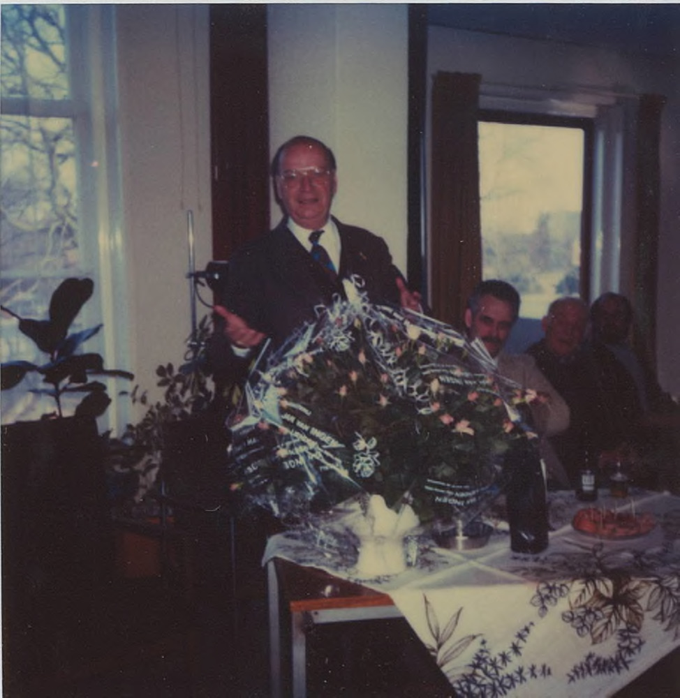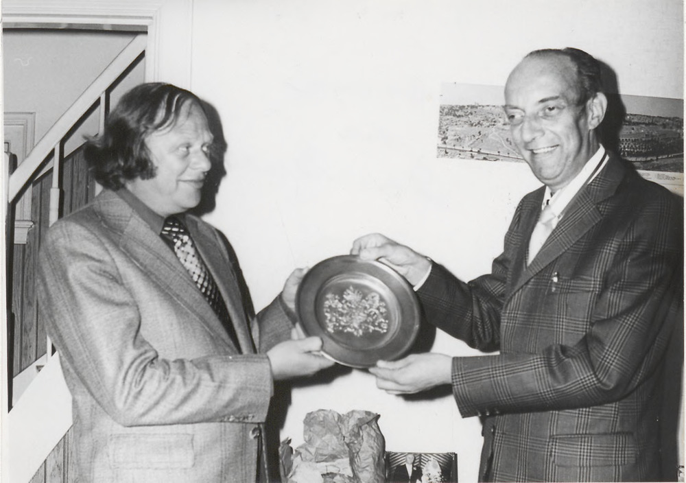 Uitreiking tinnen bord aan dhr.Gerritsen(rechts) doo...