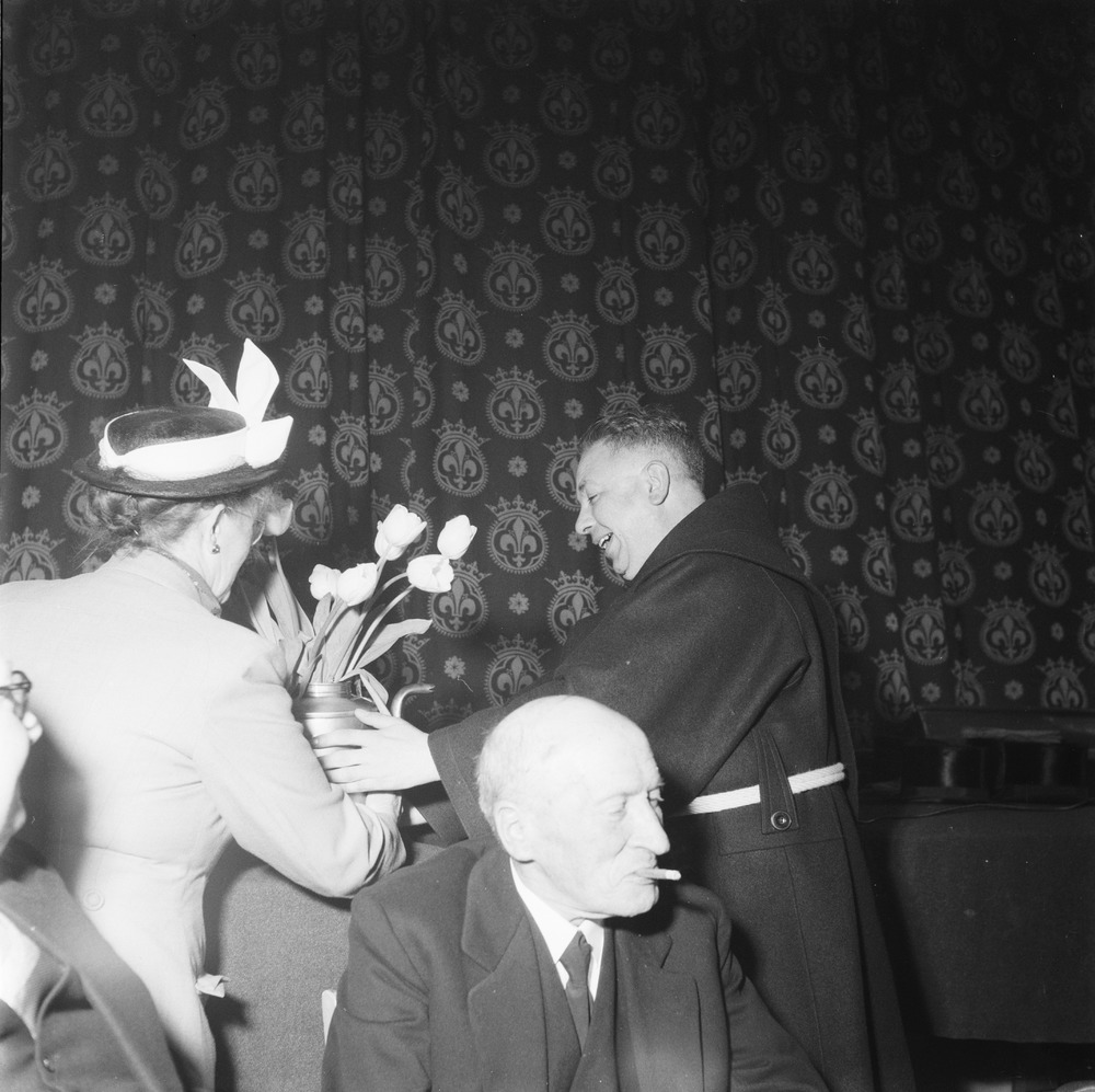 Ontvangst com. v.d. kon. in het gemeentehuis, v.l.n....