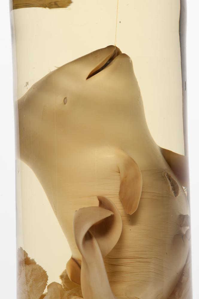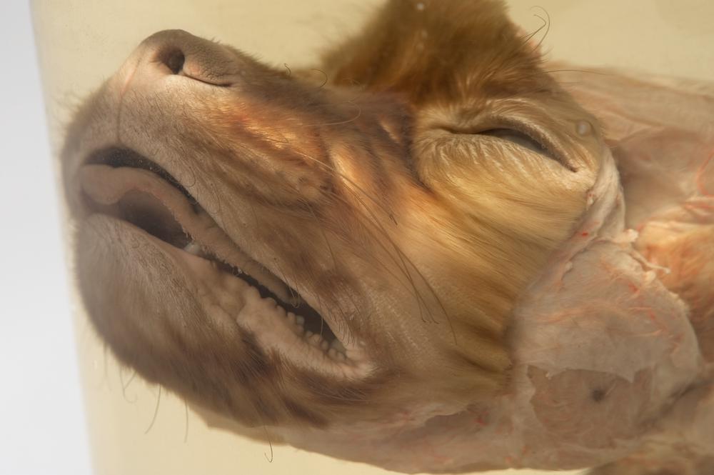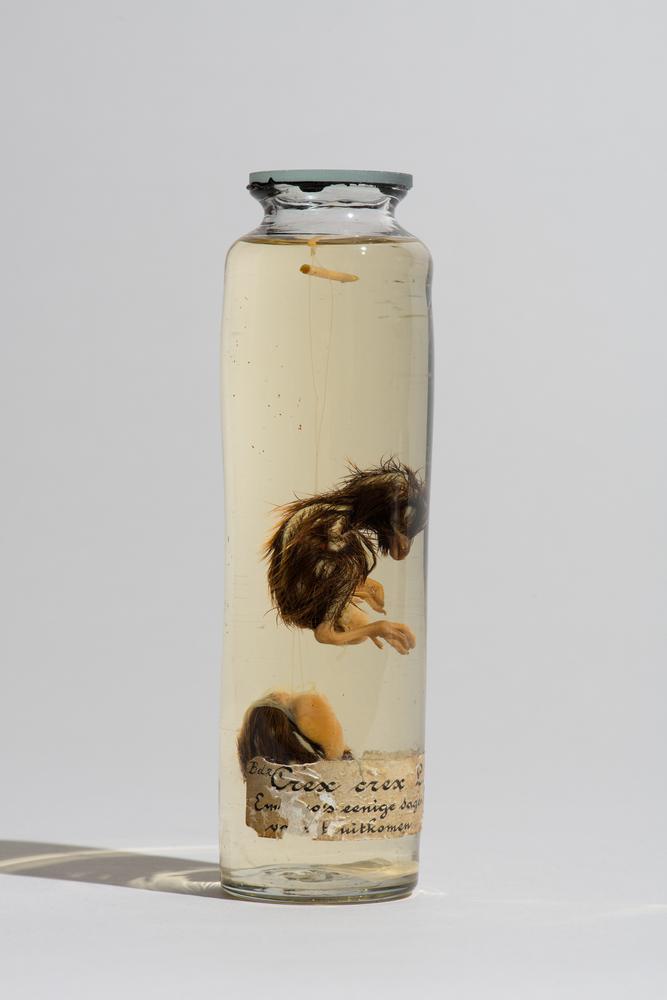 Vloeistofpreparaat van een half slangenei met jonge ...
