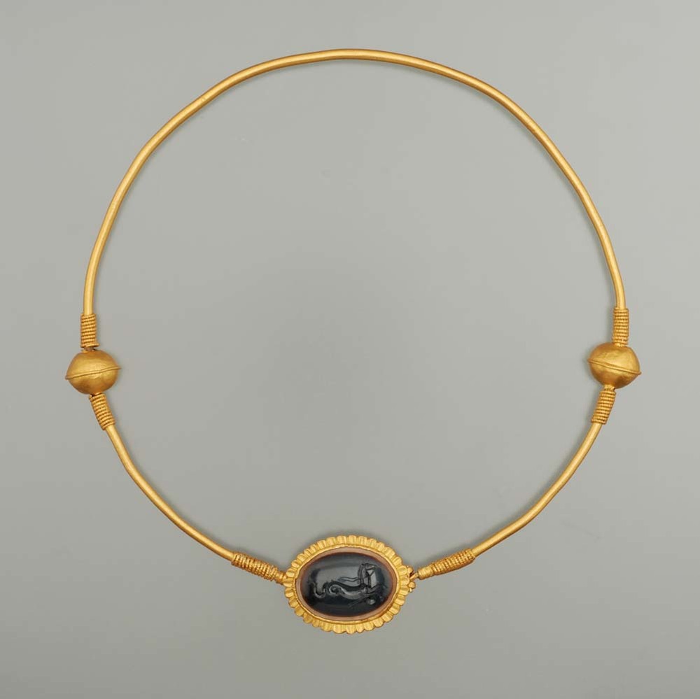 Halsring van goud met gesneden steen van sardonyx ui...