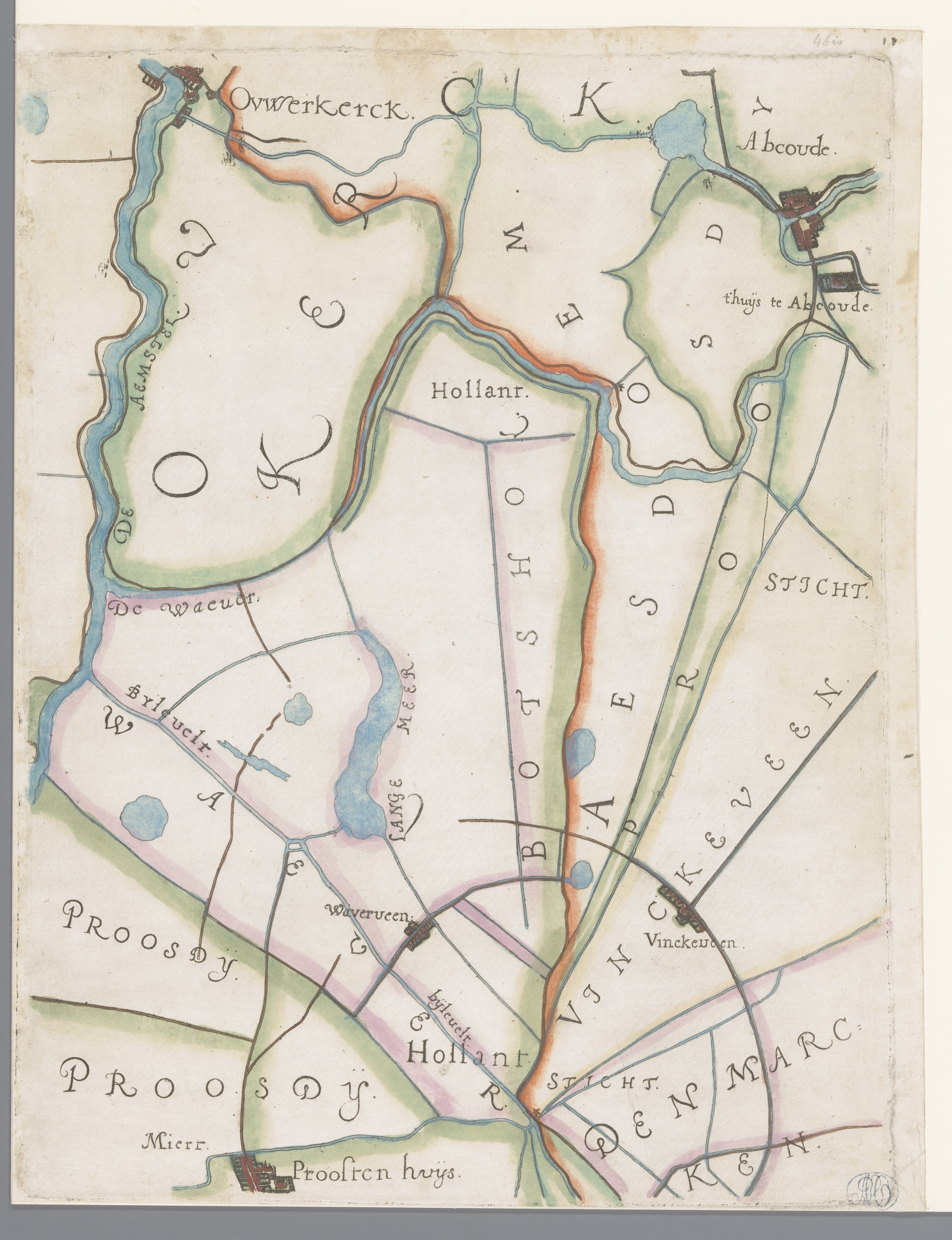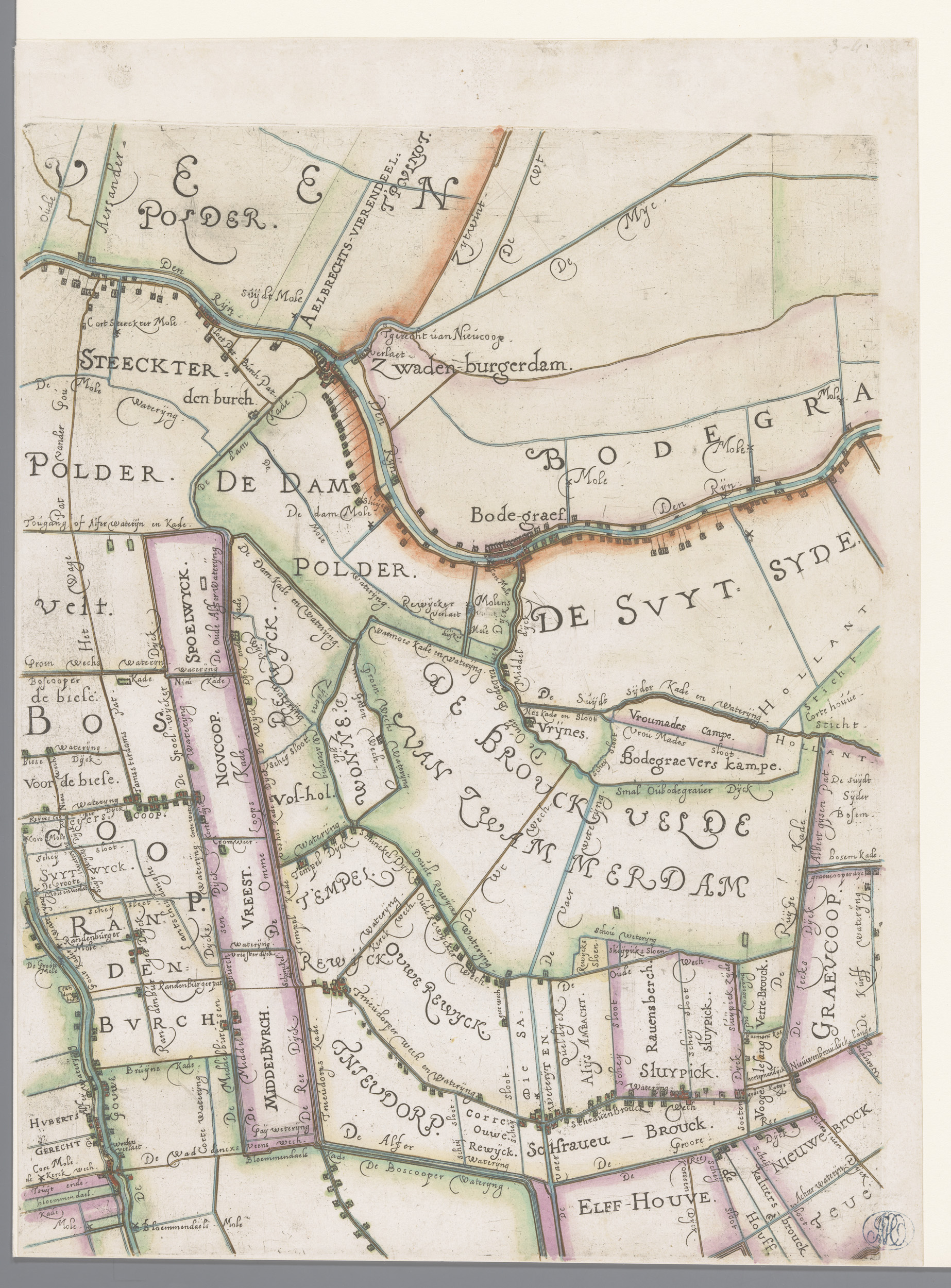 Deel van een kaart van Rijnland, met Amsterdam en om...