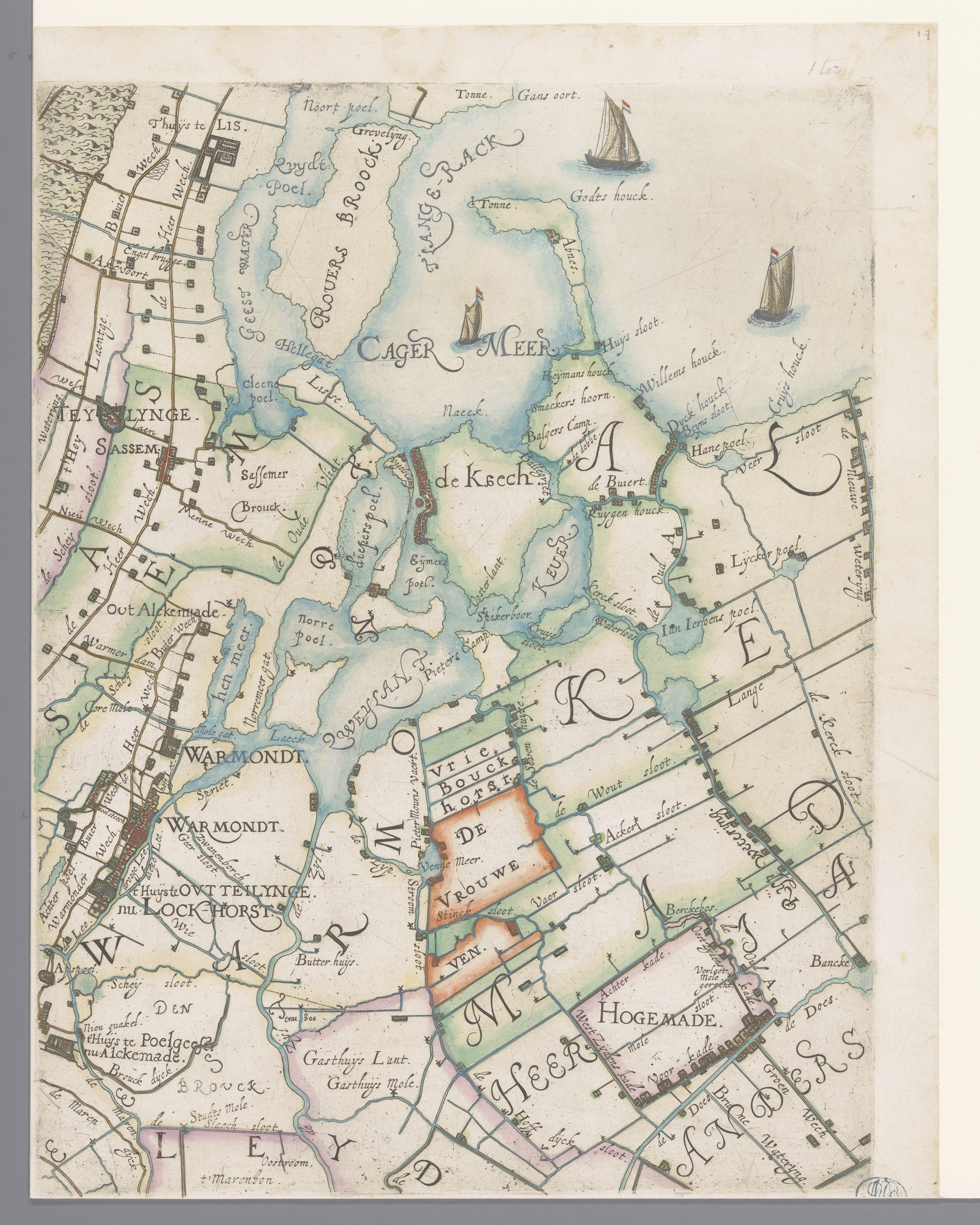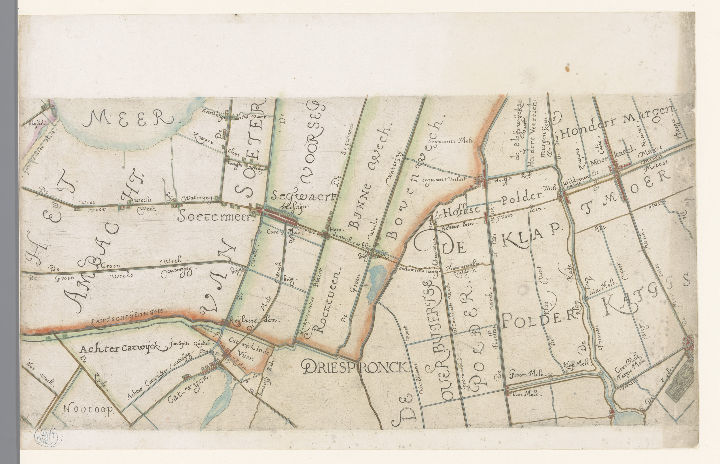 Deel van een kaart van Rijnland, met het Haarlemmerm...
