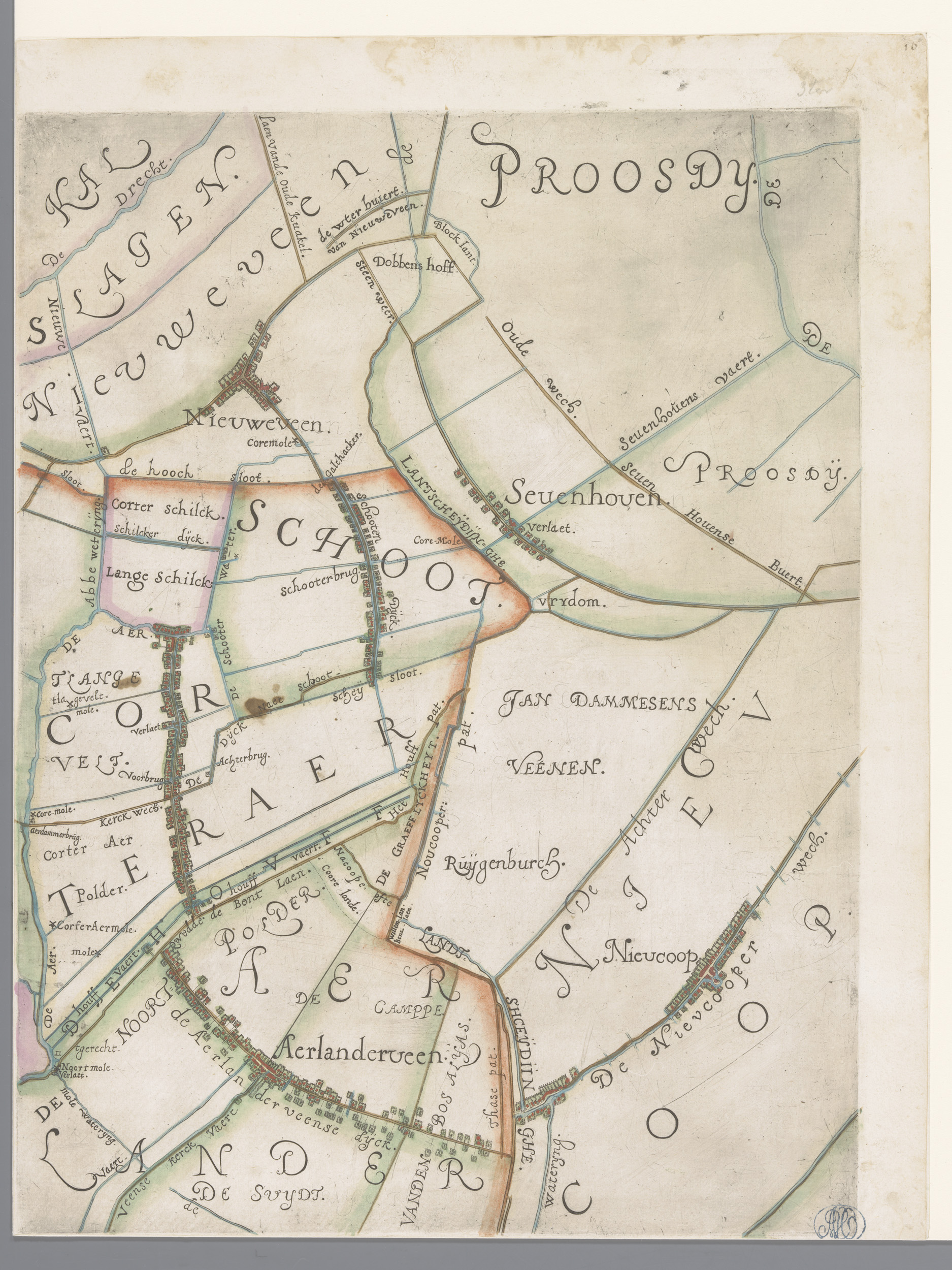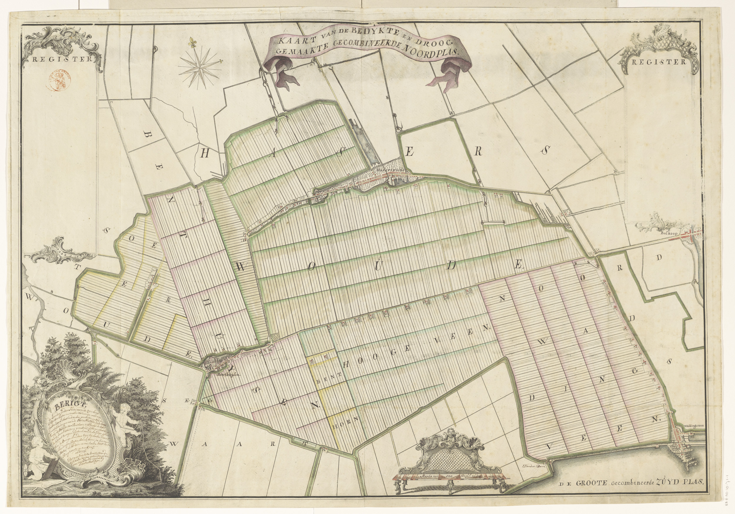 Kaart van de uitgeveende landen rond Nieuwkoop, Zeve...