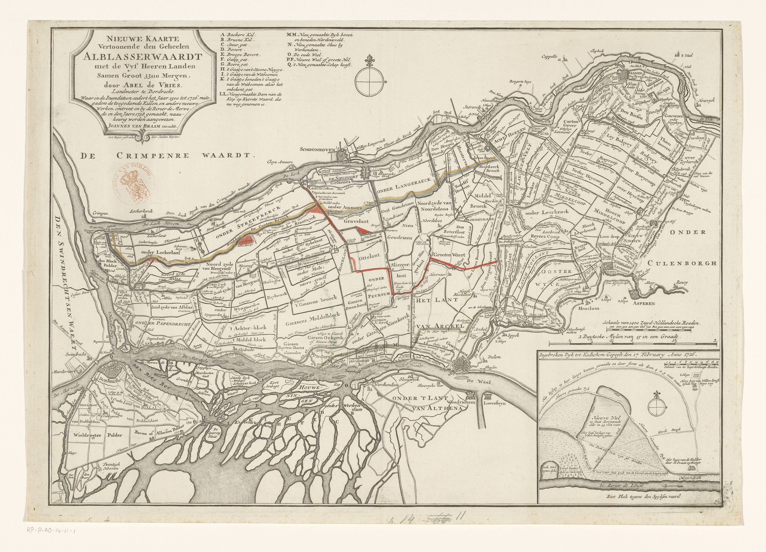 Kaart van de Alblasserwaard en de Vijfheerenlanden