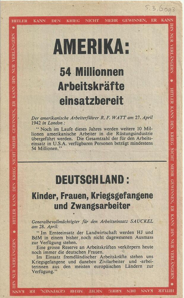 Pamflet: "Amerika: 54 Millionen Arbeitskräfte einsat...