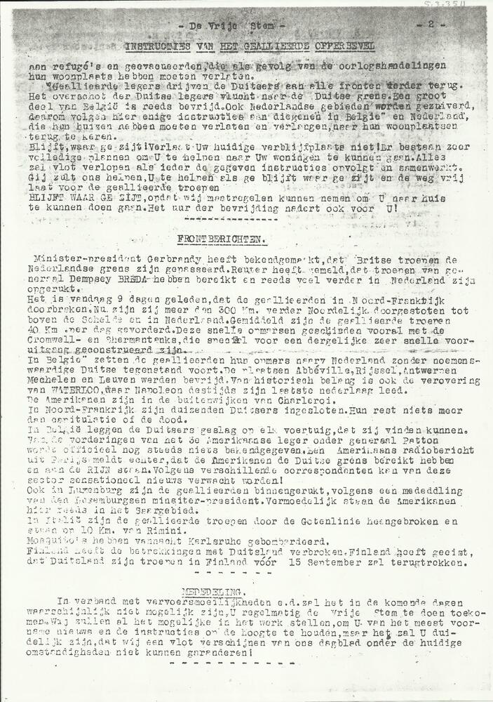 De Vrije Stem ( Fotokopieën ! ), 5 September 1944