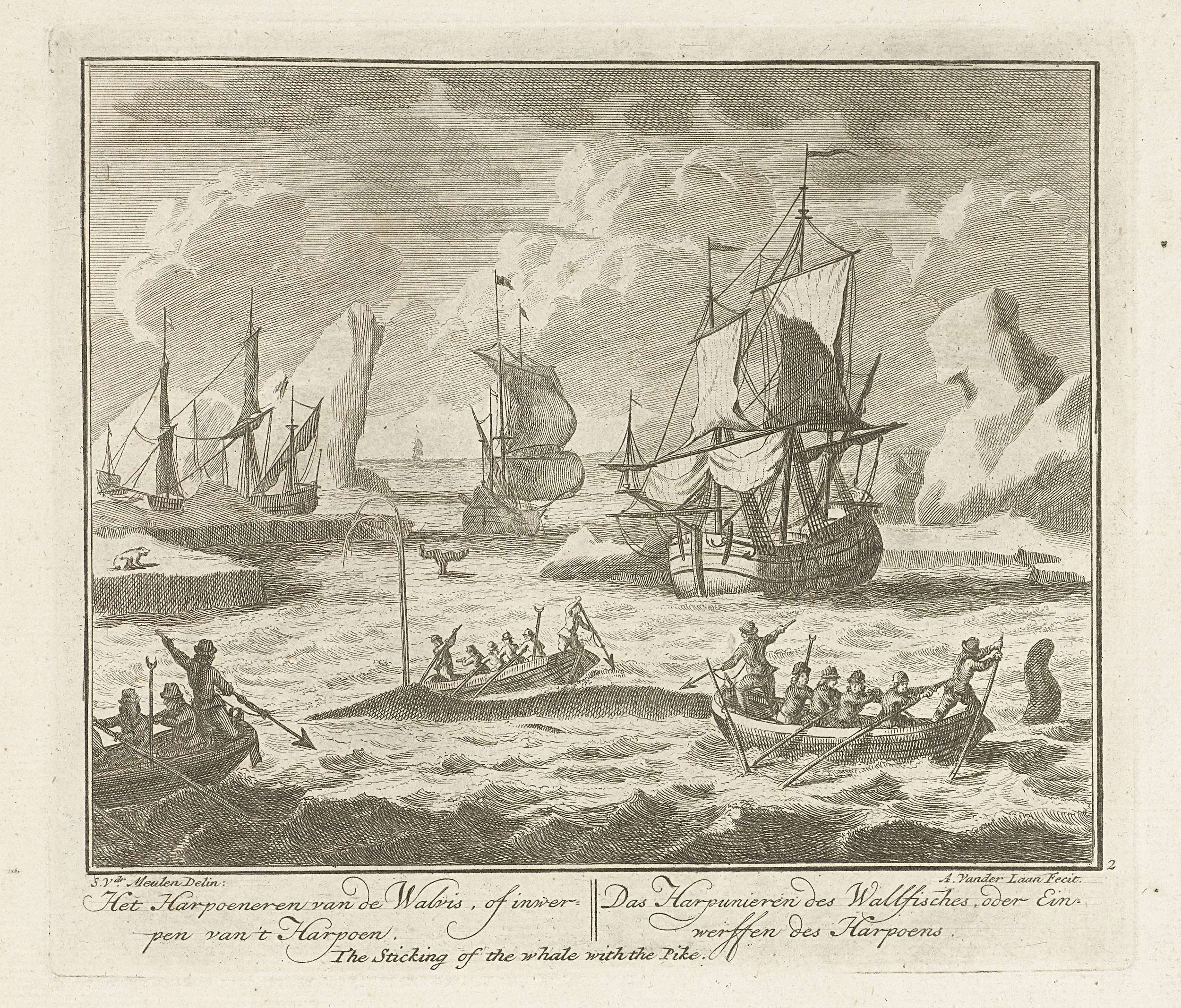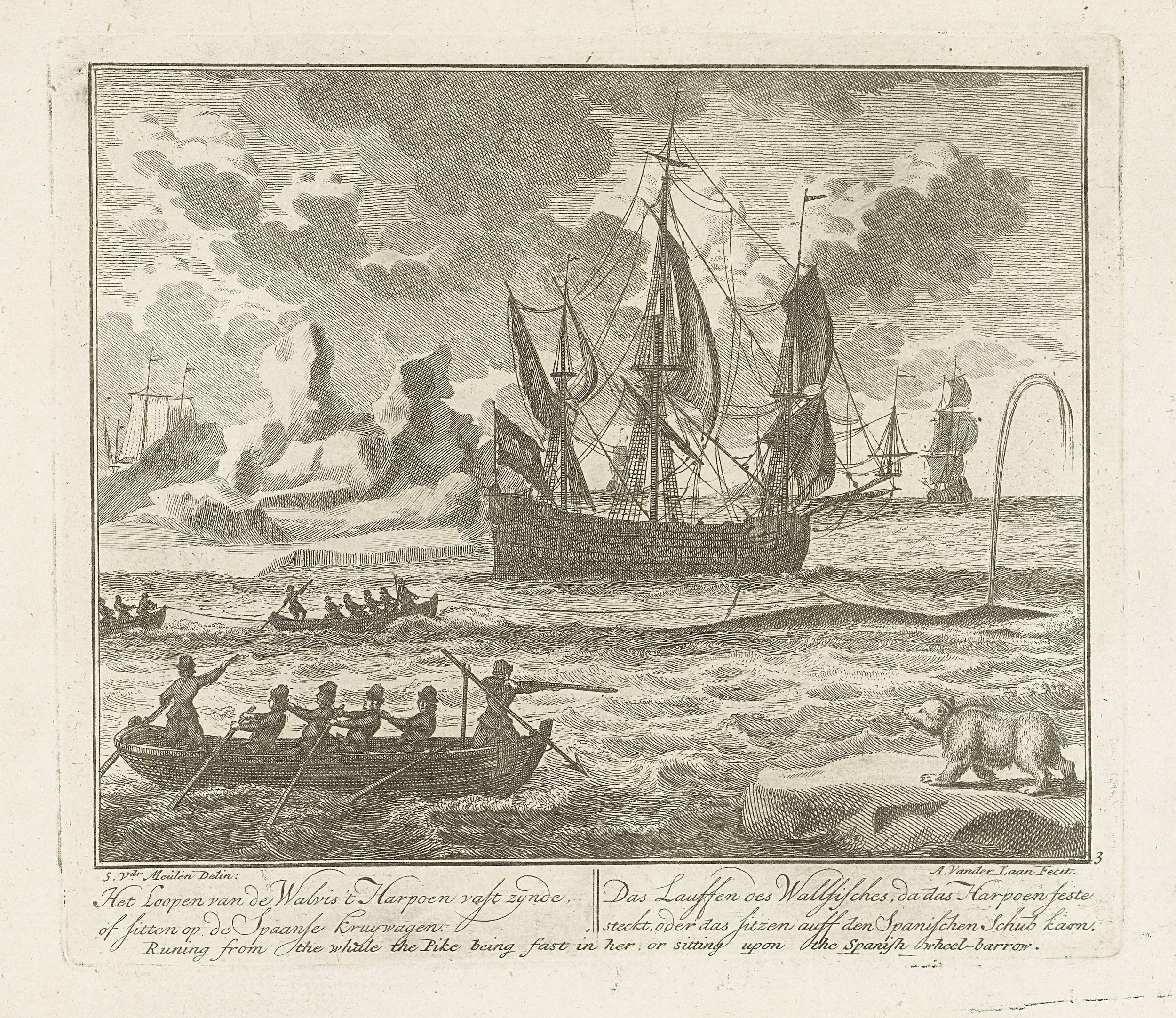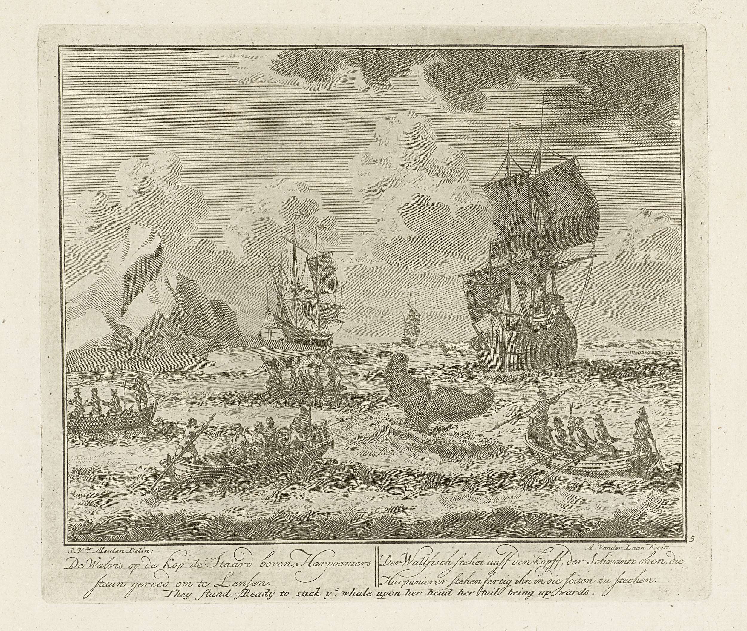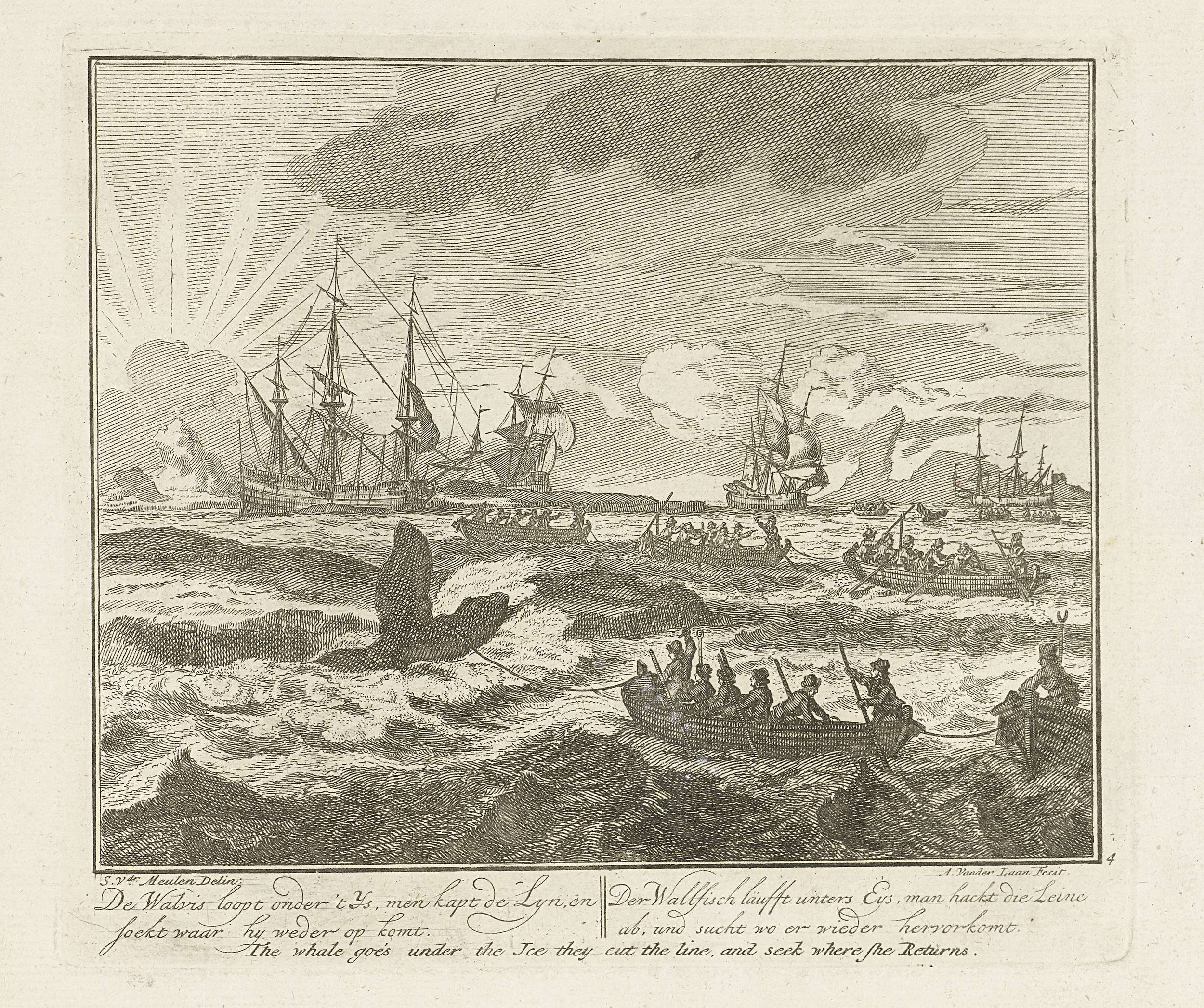 Lopen van de geharpoeneerde walvis, ca. 1725